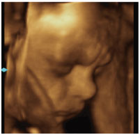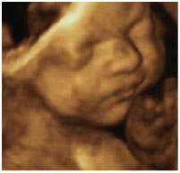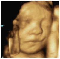 4Dエコーとは、3Dエコーに時間の要素を加えたものです。従来の2Dエコーでは断面的にしか見えなかった赤ちゃんの画像が、4Dエコーを導入してからはリアルタイムで動画として抽出できるようになりました。